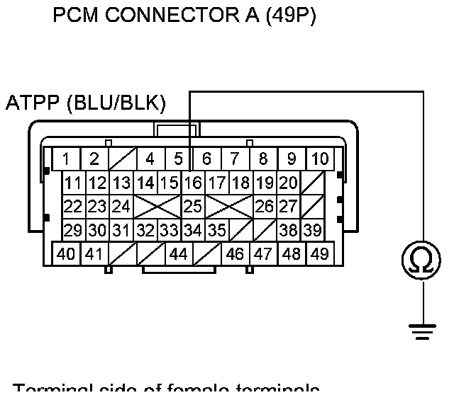 14. Disconnect PCM connector A (49P).