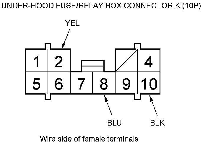 2. Disconnect under-hood fuse/relay box connector K (10P).