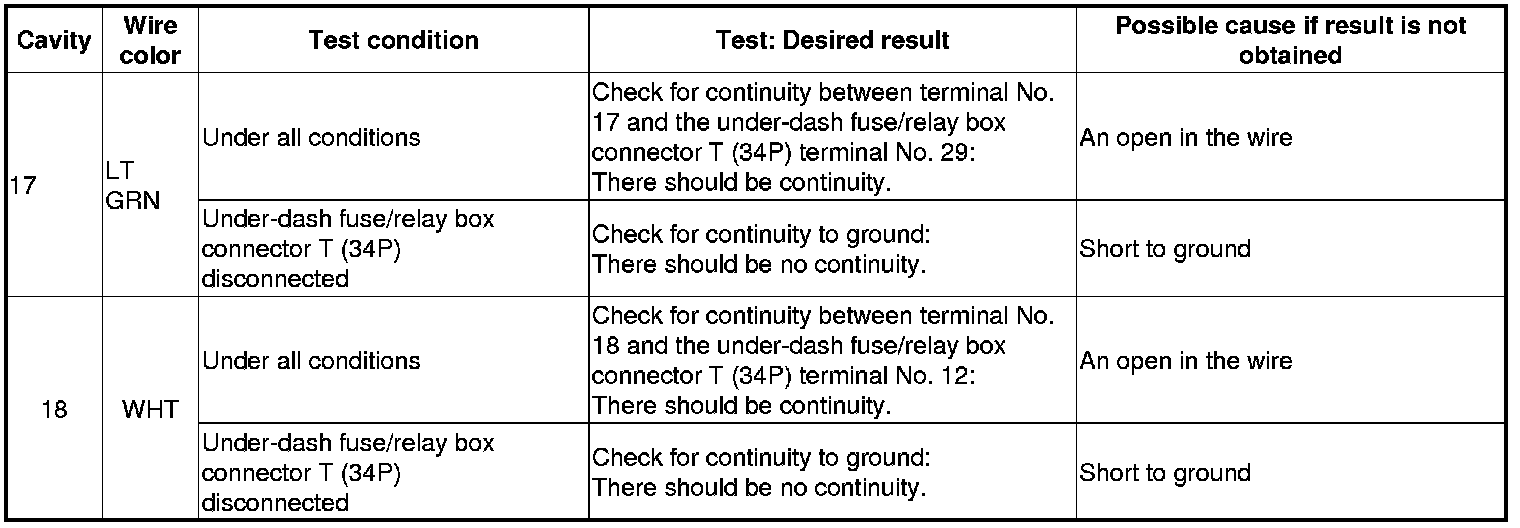 4. Reconnect the connector, and make these input tests at the connector.