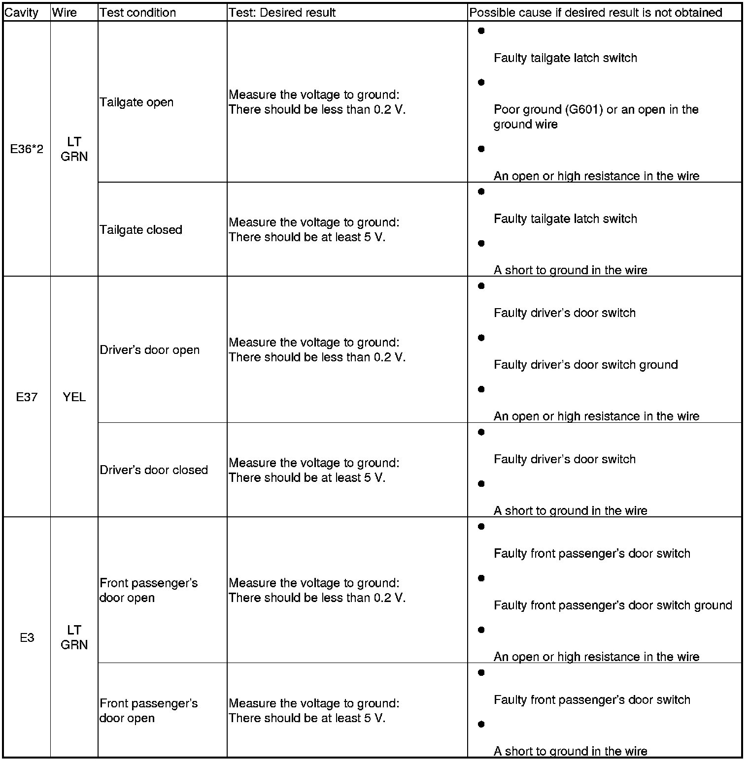 Keyless/Power Door Locks/Security System (MICU And Door Multiplex Control Unit) Input Test