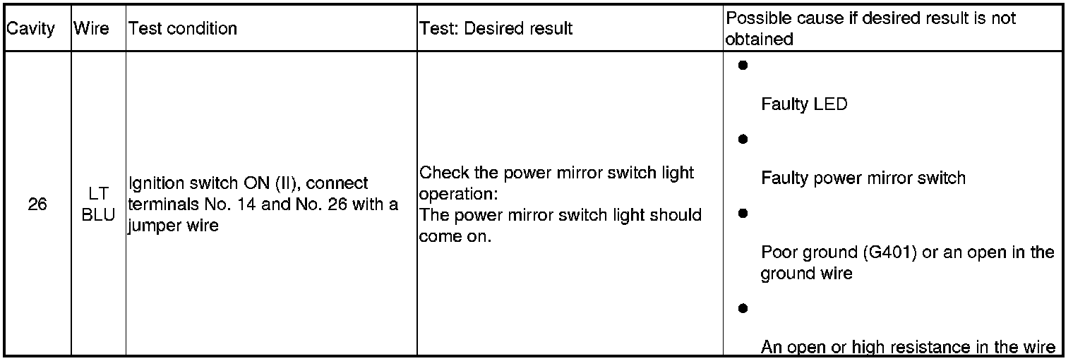 Power Mirrors (Power Window Master Switch) Input Test (Without Driving Position Memory System)