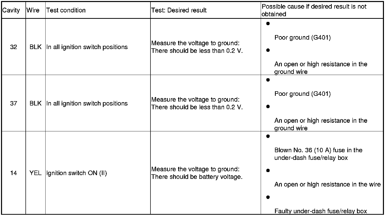 NOTE: Before testing, troubleshoot the multiplex integrated control unit first, using B-CAN System Diagnosis Test Mode A Troubleshooting - B-CAN System Diagnosis Test Mode A.