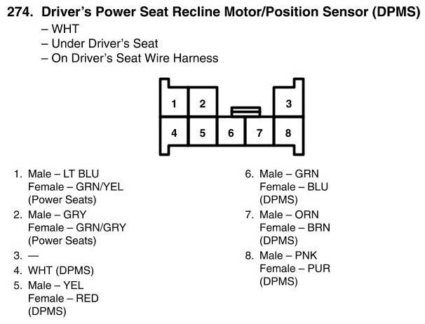 View 274 - Driver's Power Seat Recline Motor/Position Sensor Connector View (DPMS)