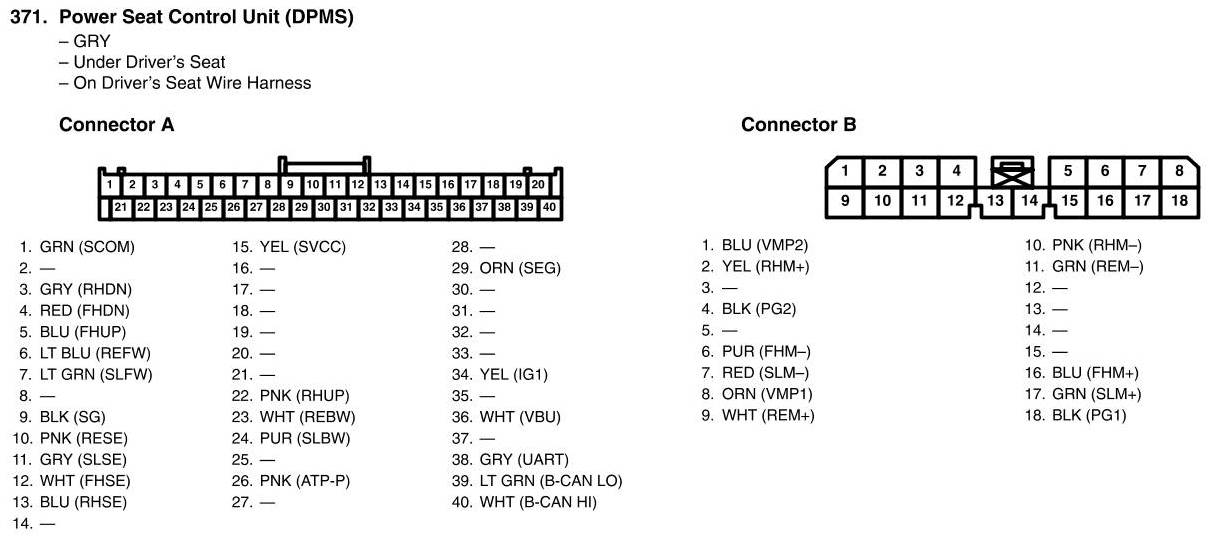 View 371 - Power Seat Control Unit Connector View (DPMS)