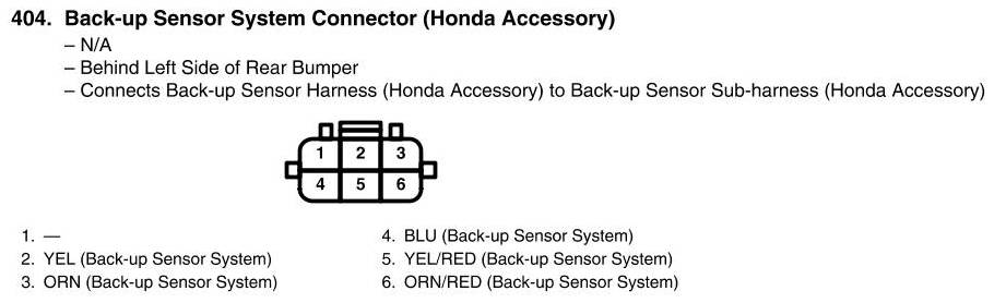 View 404 - Back-Up Sensor System Connector View (Honda Accessory)
