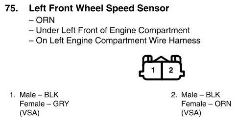 View 75 - Left Front Wheel Speed Sensor Connector View