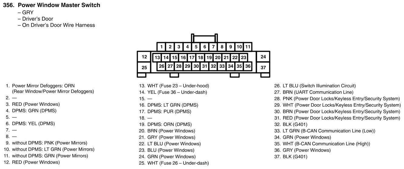 Power Window Master Switch Connector View