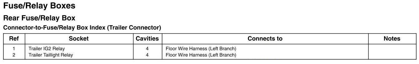 Rear Fuse/Relay Box - Connector-to-Fuse/Relay Box Index