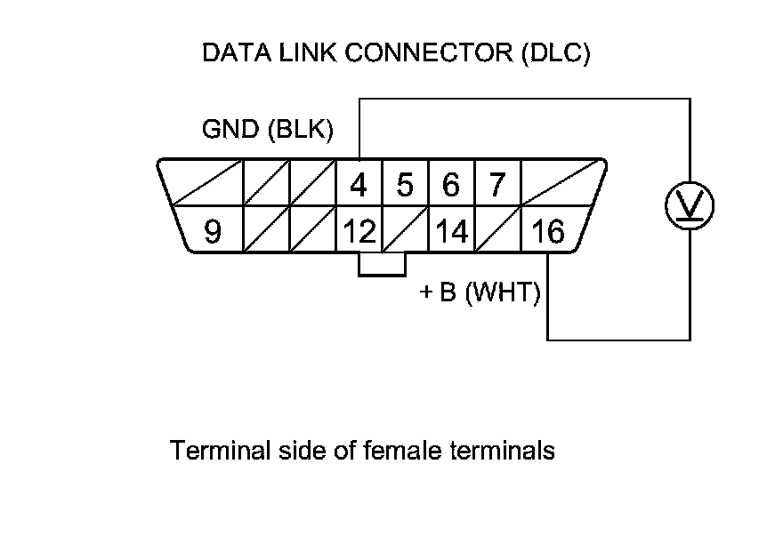 26. Measure the voltage between DLC terminal No. 16 and body ground.