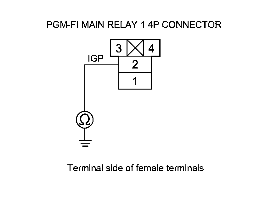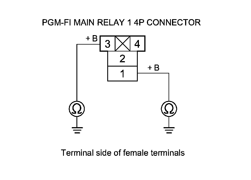 68. Check for continuity between PGM-FI main relay 1 4P connector terminal No. 2 and PCM connector terminal B3.