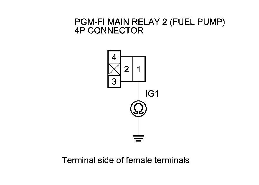 48. Check for continuity between PGM-FI main relay 2 (FUEL PUMP) 4P connector terminal No. 1 and body ground.