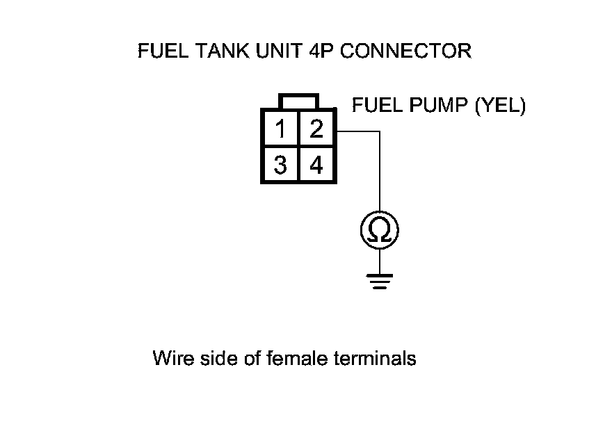 55. Check for continuity between fuel tank unit 4P connector terminal No. 2 and body ground.