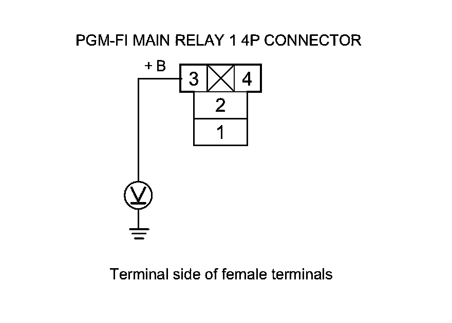 63. Measure the voltage between PGM-FI main relay 1 4P connector terminal No. 3 and body ground.