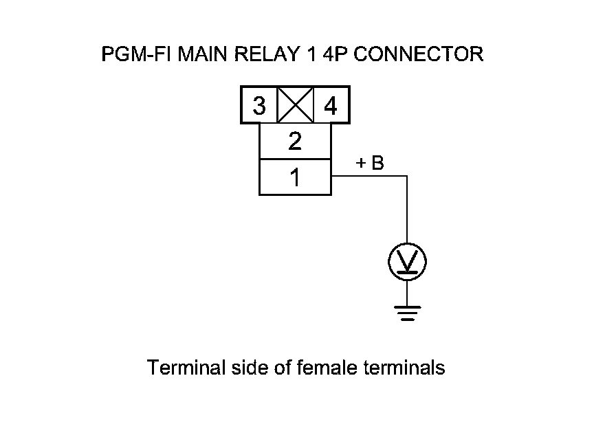 67. Measure the voltage between PGM-FI main relay 1 4P connector terminal No. 1 and body ground.