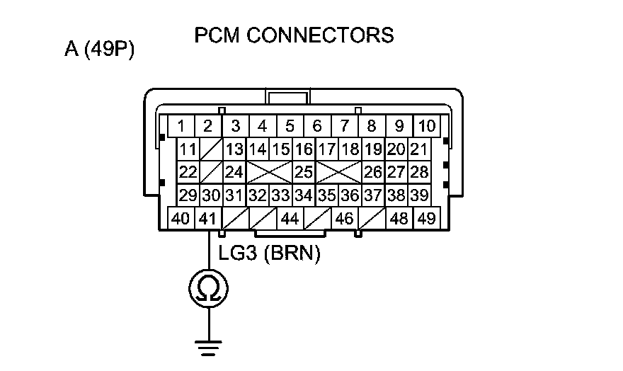 71. Check for continuity between body ground and PCM connector terminals A41, B1, B40, B41, C1, and C41 individually.