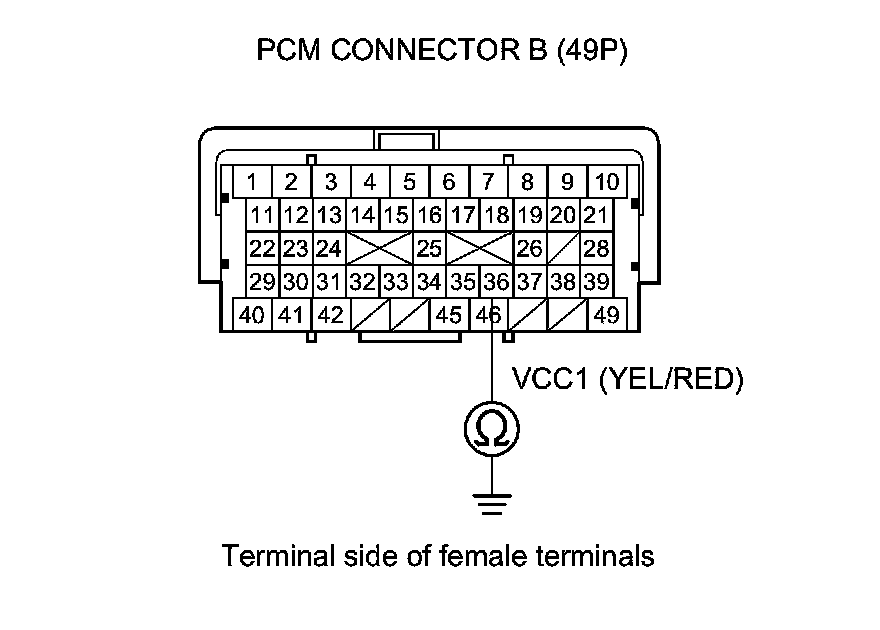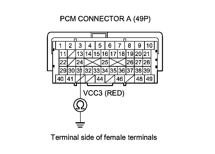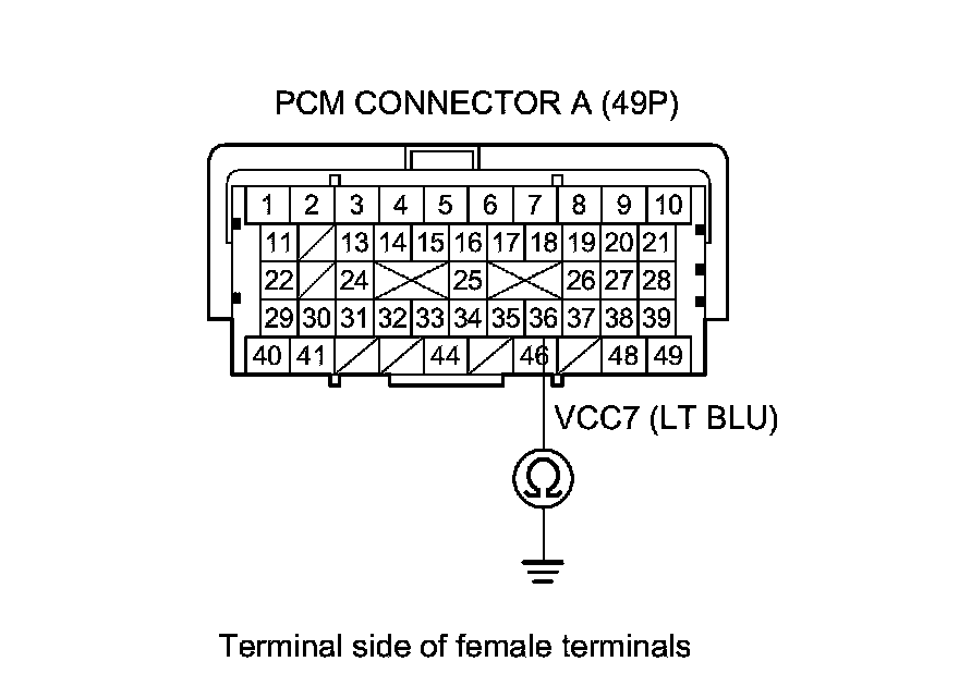 33. Check for continuity between PCM connector terminal A49 and DLC terminal No. 14.