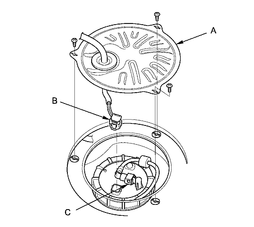 6. Disconnect the quick-connect fitting (C) from the fuel tank unit.