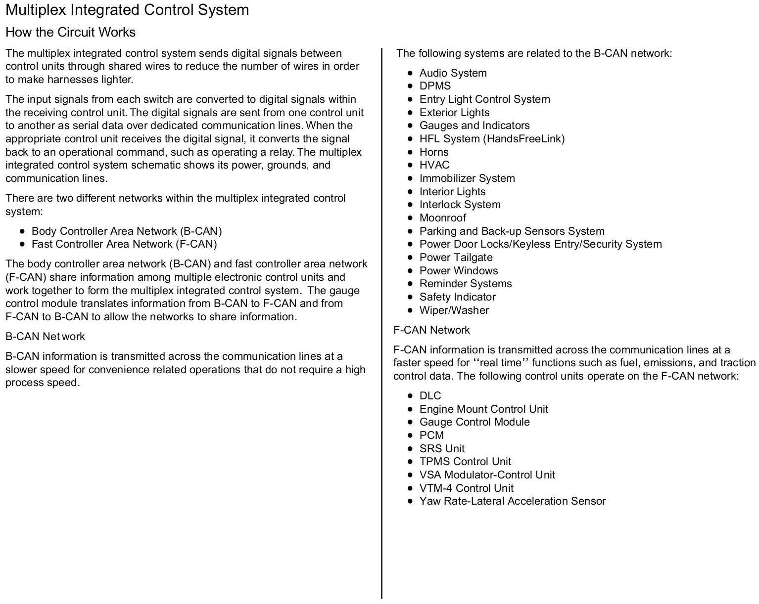 Home >> Honda >> 2009 >> Pilot 2WD V6-3.5L >> Repair and Diagnosis >> Powertrain Management >> Computers and Control Systems >> Information Bus >> Description and Operation >> How The Multiplex Integrated Control System Circuit Works