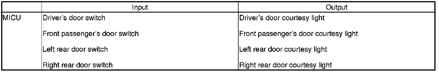 The MICU controls the automatic lighting system based on inputs from each switch and B-CAN data.