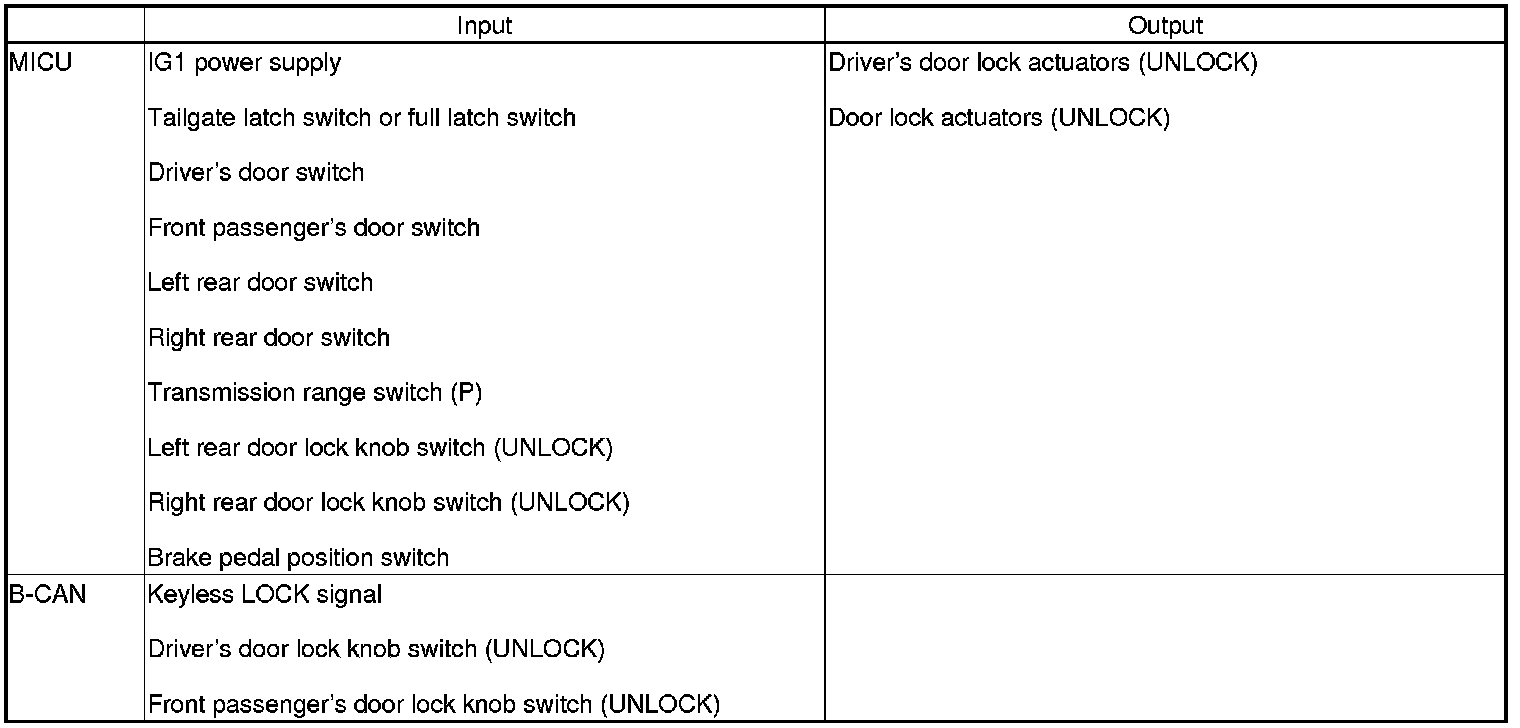 When any of the data from the B-CAN circuit cannot be received within a specified time, or an unusual combination of data is recognized, the MICU enters the software fail-safe mode. The data that cannot be received is assigned a pre-programmed value.