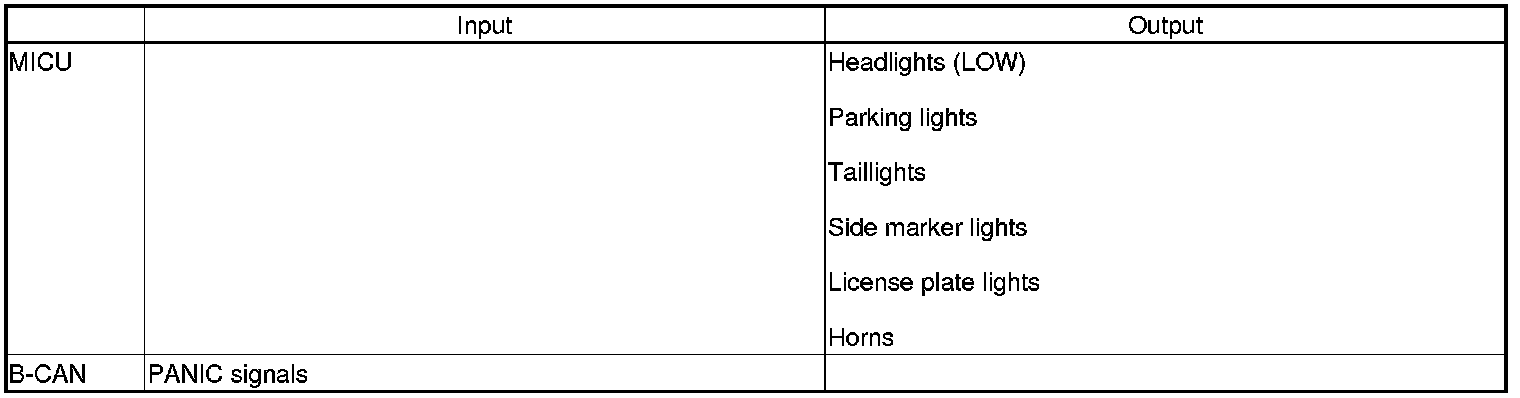 The MICU controls the keyless PANIC operation based on B-CAN data.