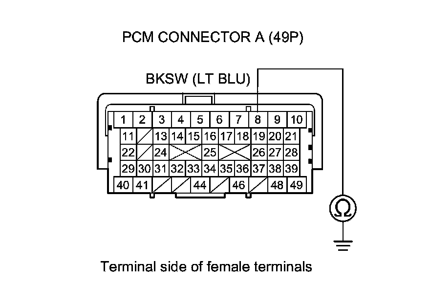 8. Check for continuity between PCM connector terminal A8 and body ground.