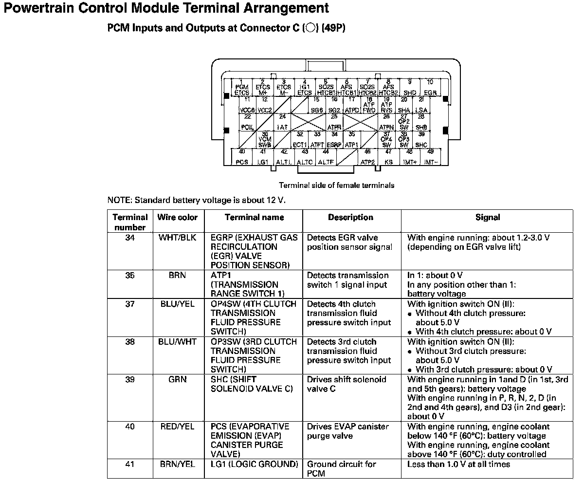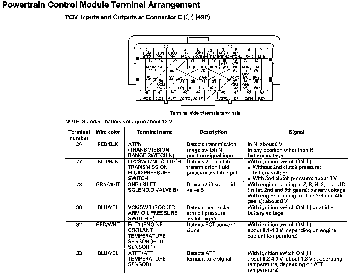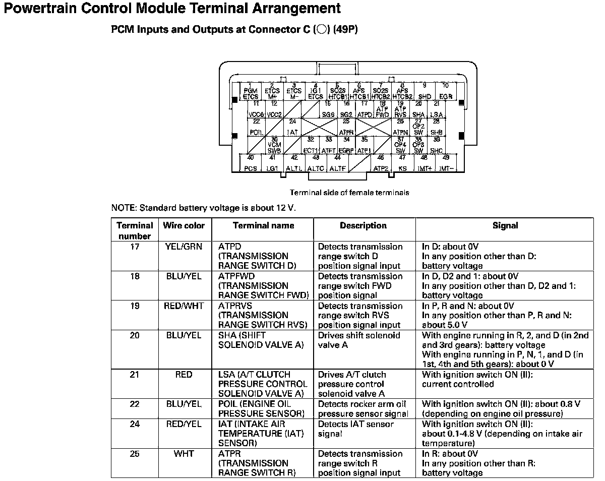 PCM Inputs And Outputs At Connector C