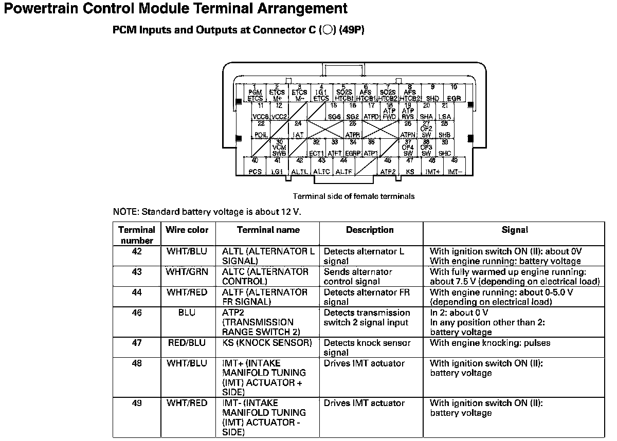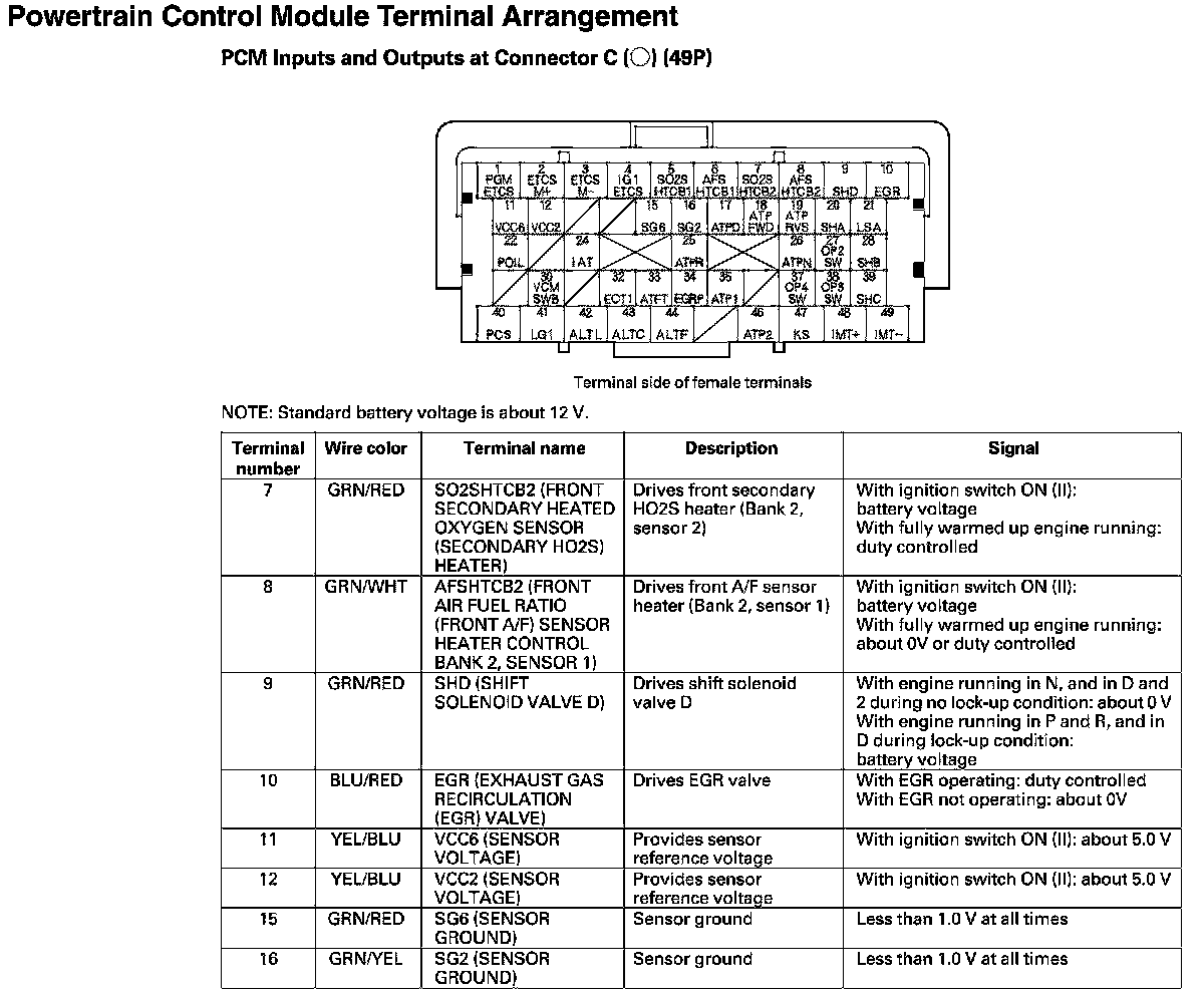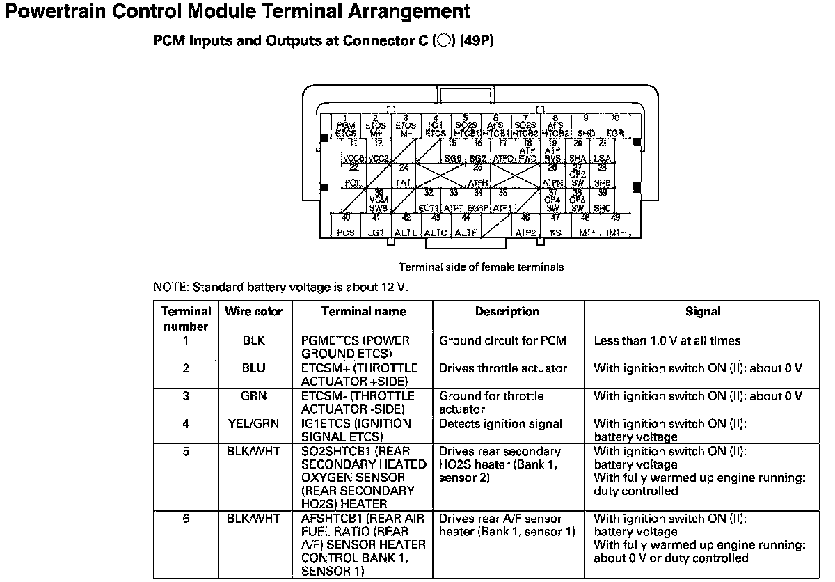 PCM Inputs And Outputs At Connector C
