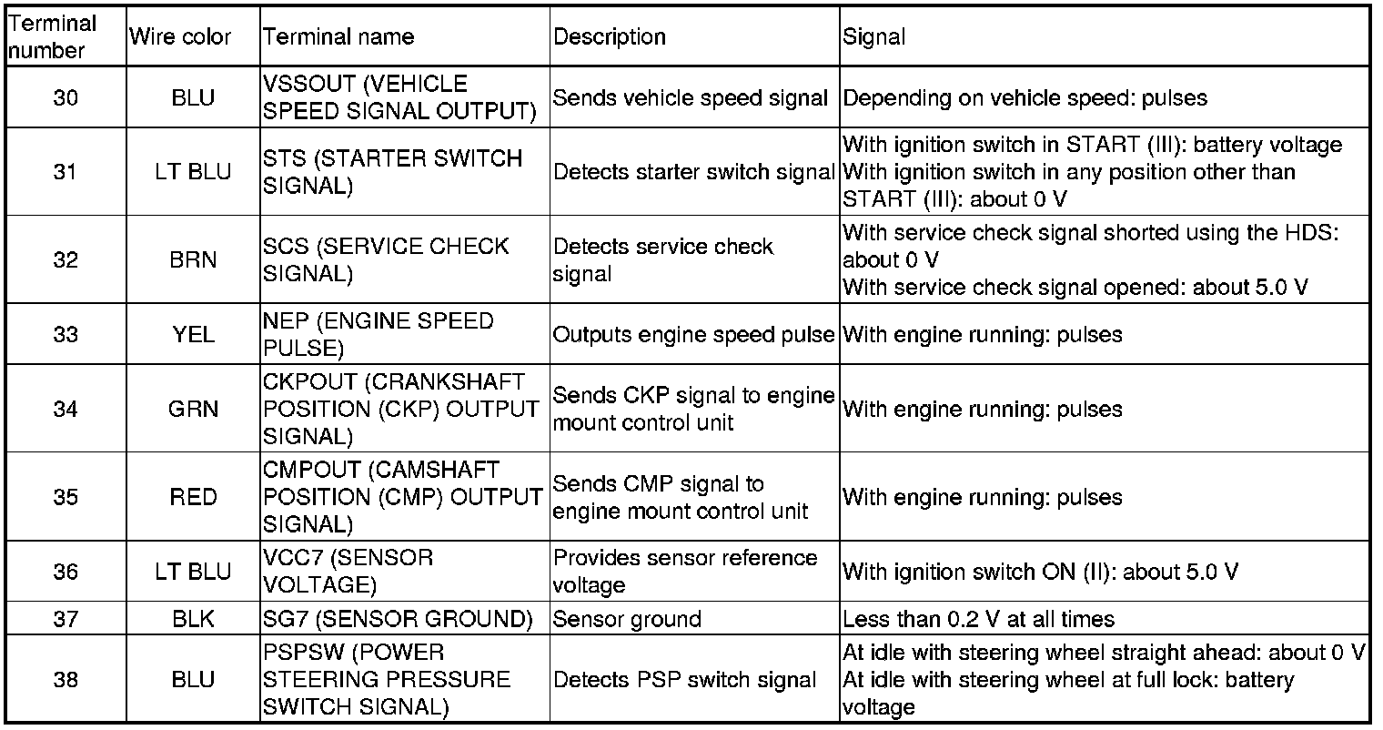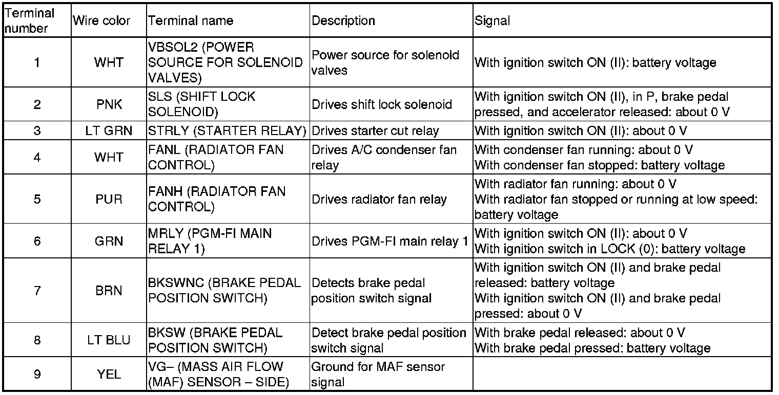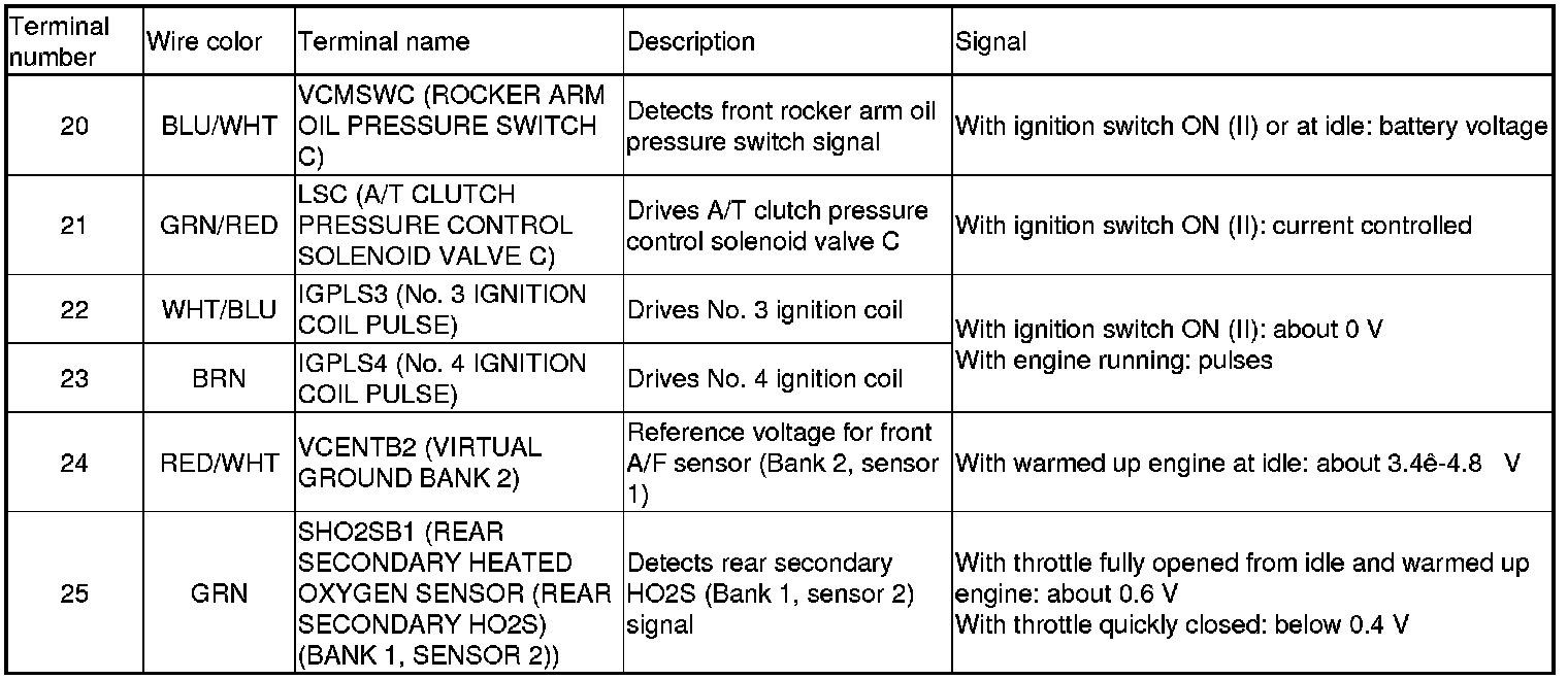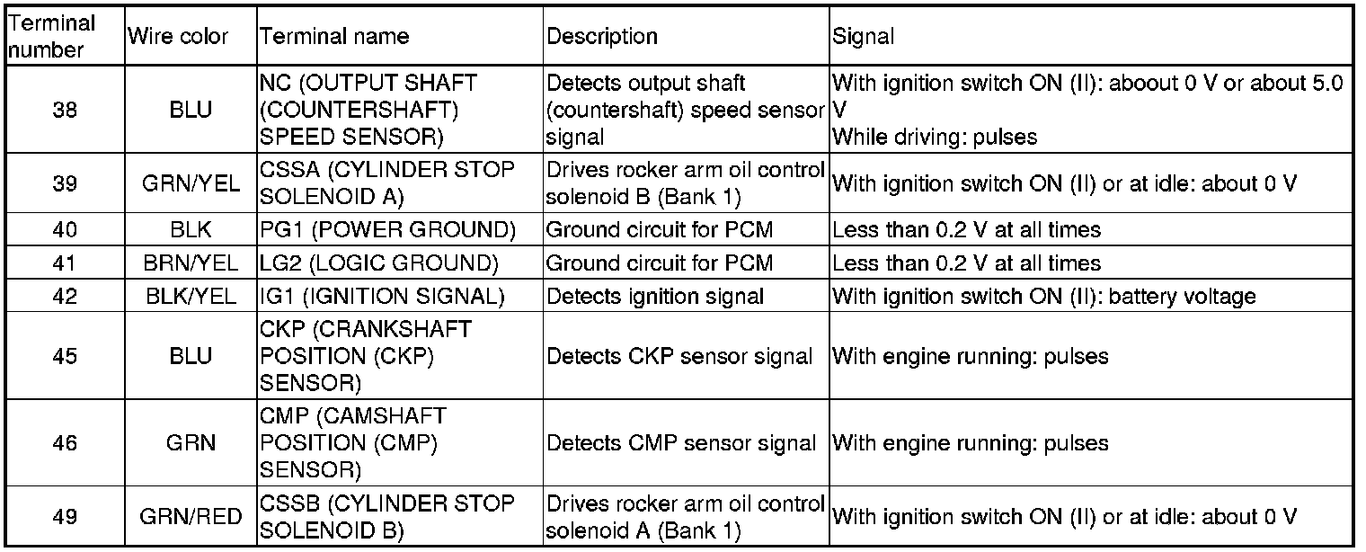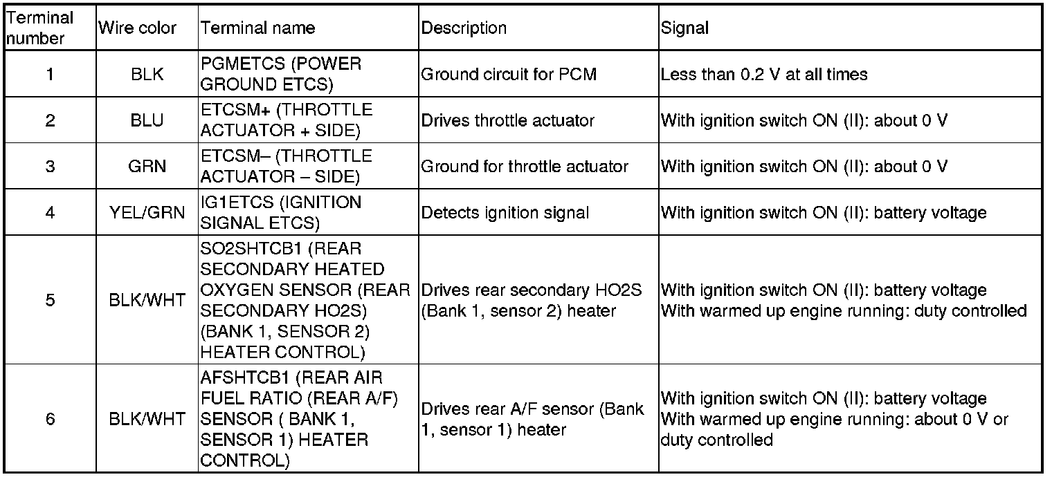 Home >> Honda >> 2009 >> Pilot 2WD V6-3.5L >> Repair and Diagnosis >> Powertrain Management >> Computers and Control Systems >> Testing and Inspection >> Pinout Values and Diagnostic Parameters >> PCM Inputs and Outputs