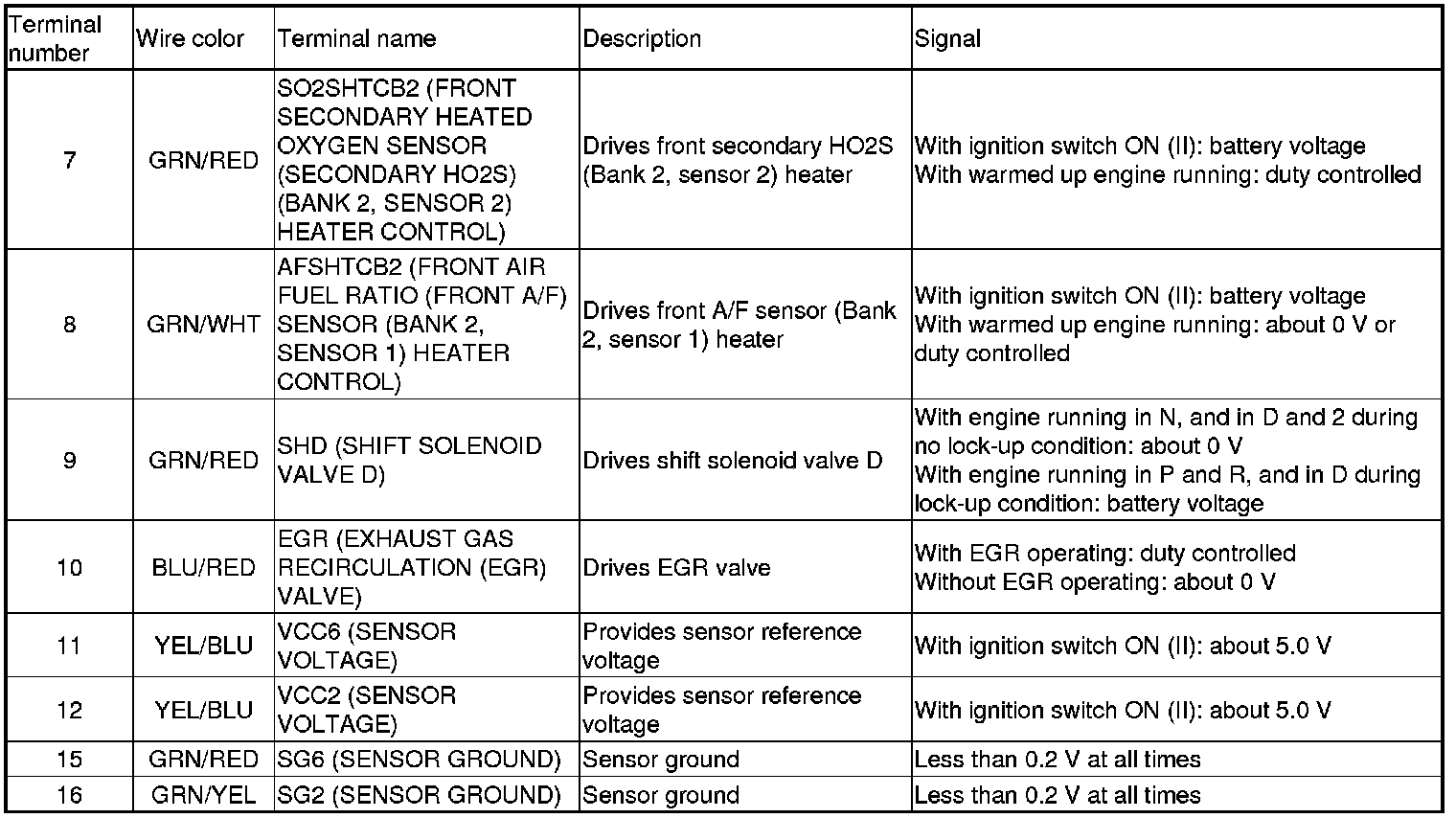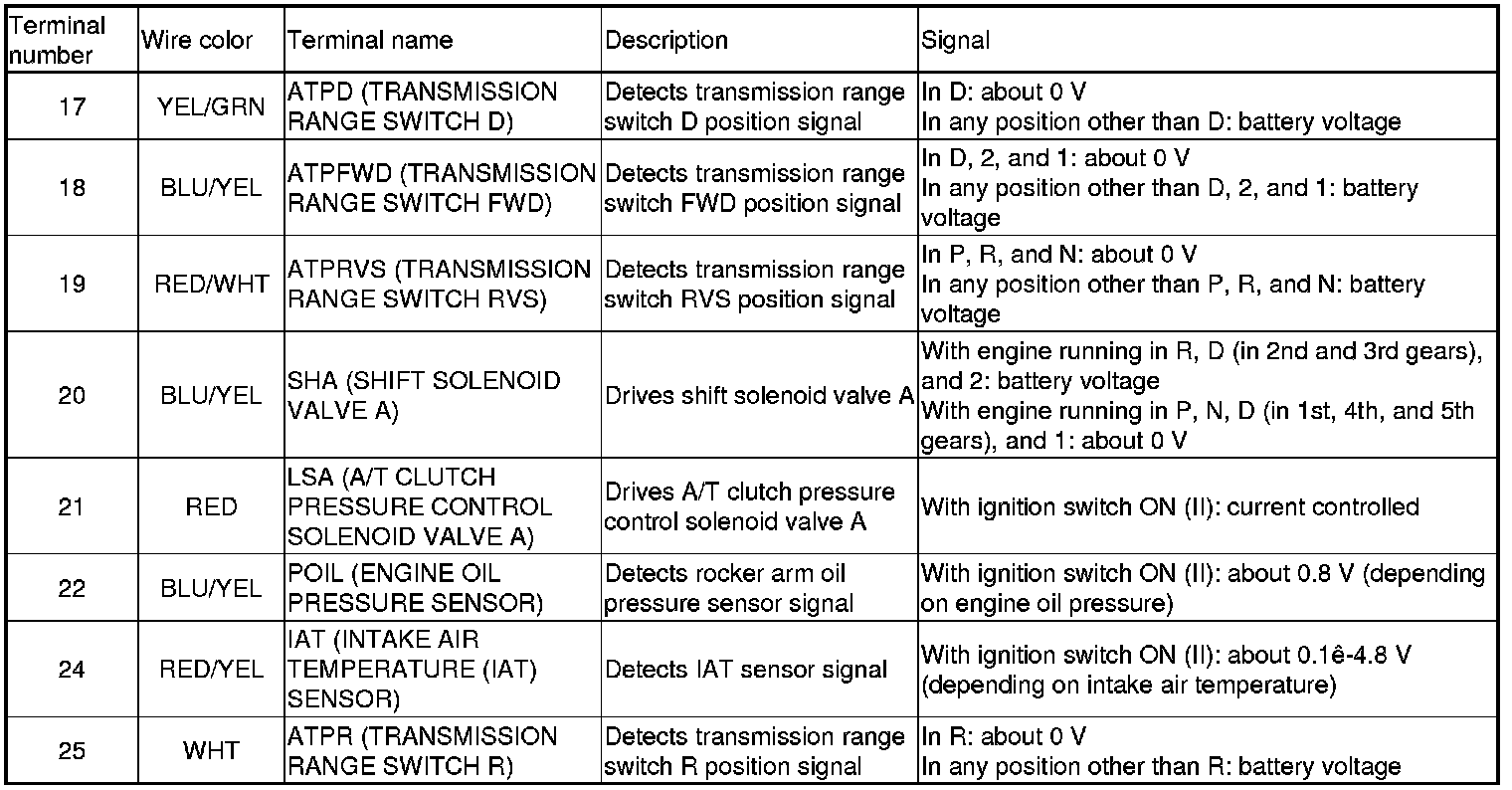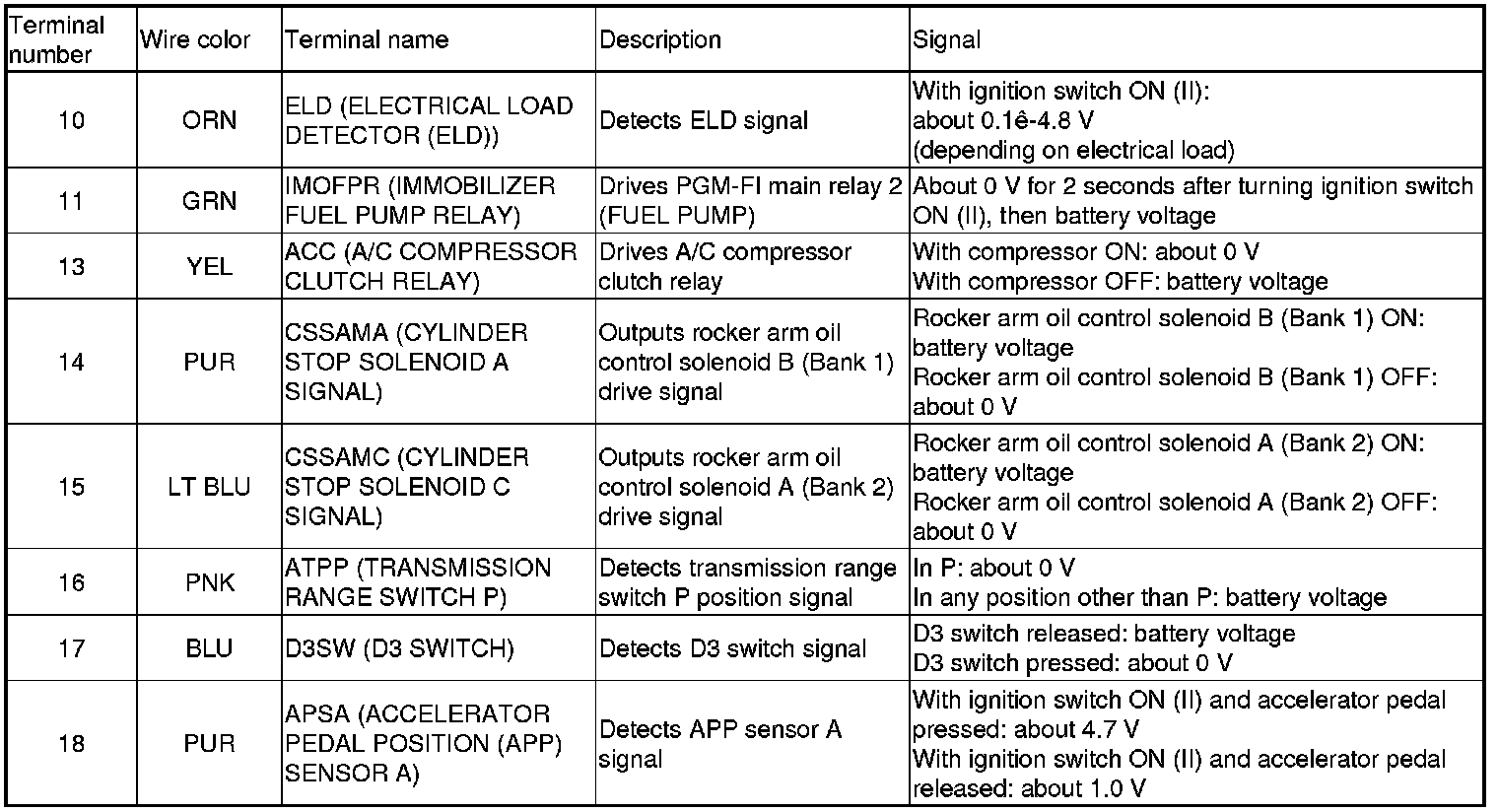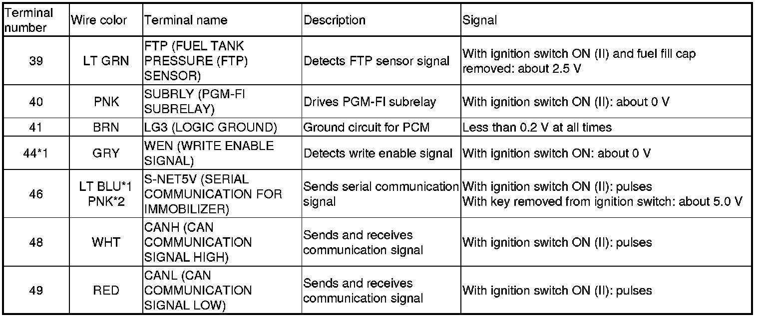 Home >> Honda >> 2009 >> Pilot 2WD V6-3.5L >> Repair and Diagnosis >> Powertrain Management >> Computers and Control Systems >> Testing and Inspection >> Pinout Values and Diagnostic Parameters >> PCM Inputs and Outputs