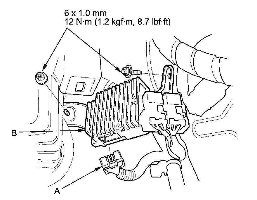 4. Remove the engine mount control unit (B).