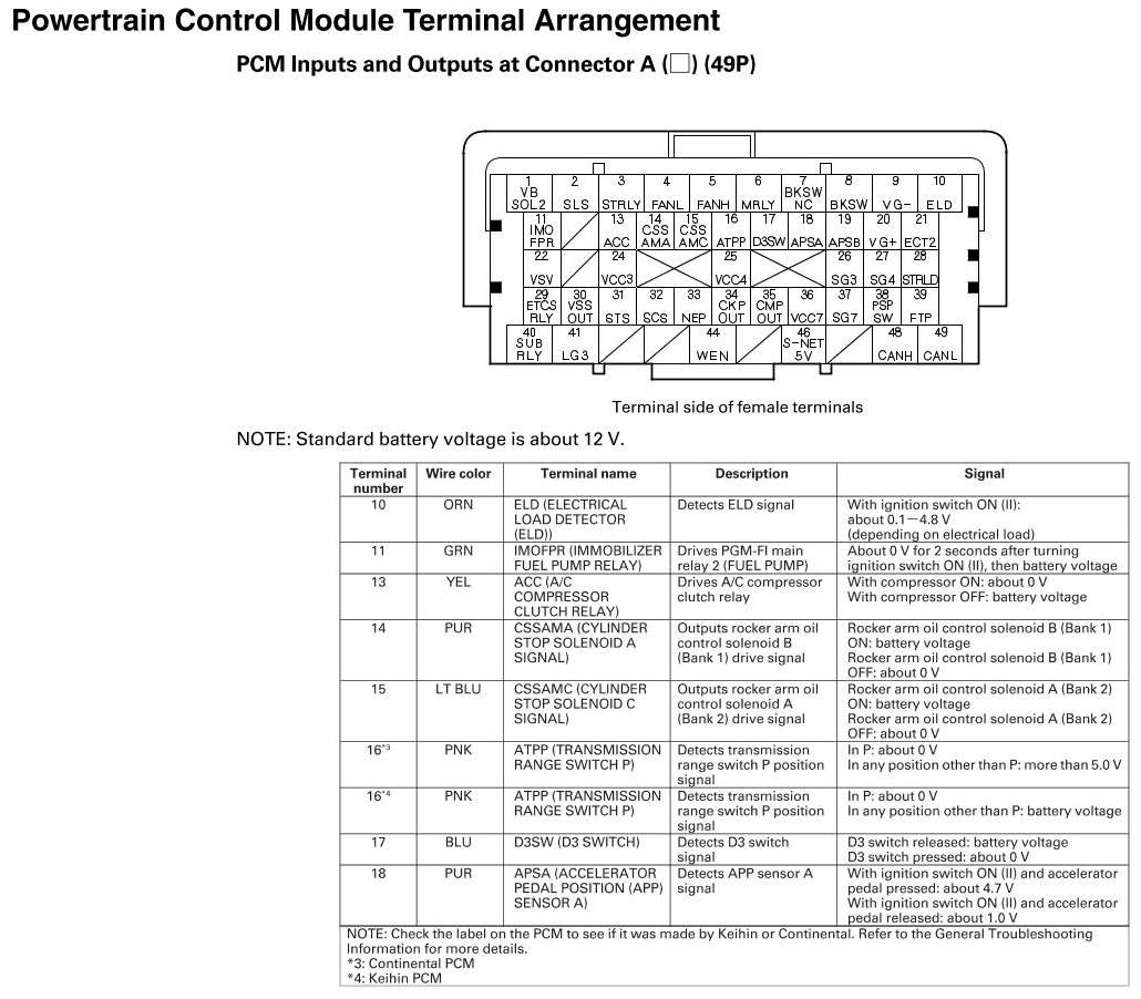 PCM Inputs And Outputs At Connector A