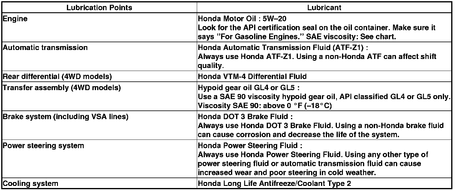 Home >> Honda >> 2009 >> Pilot 2WD V6-3.5L >> Repair and Diagnosis >> Specifications >> Fluid Type Specifications >> Fluids