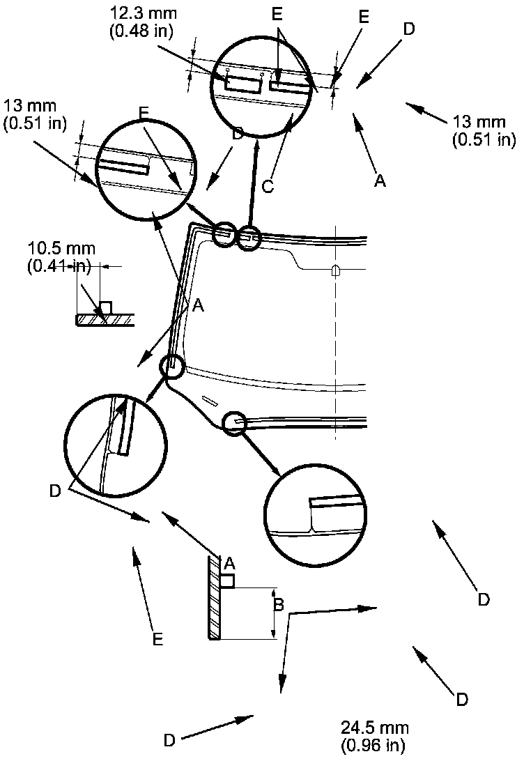 8. Scrape smooth the old adhesive with a knife until there is a thickness of about 2 mm (0.08 in) on the bonding surface around the entire windshield opening flange: