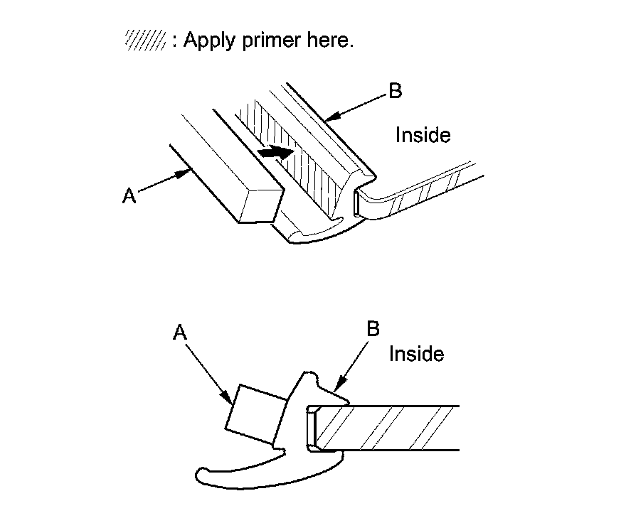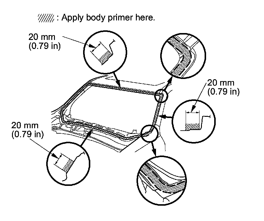 - Never touch the primed surfaces with your hands. If you do, the adhesive may not bond to the windshield properly, causing a leak after the windshield is installed.