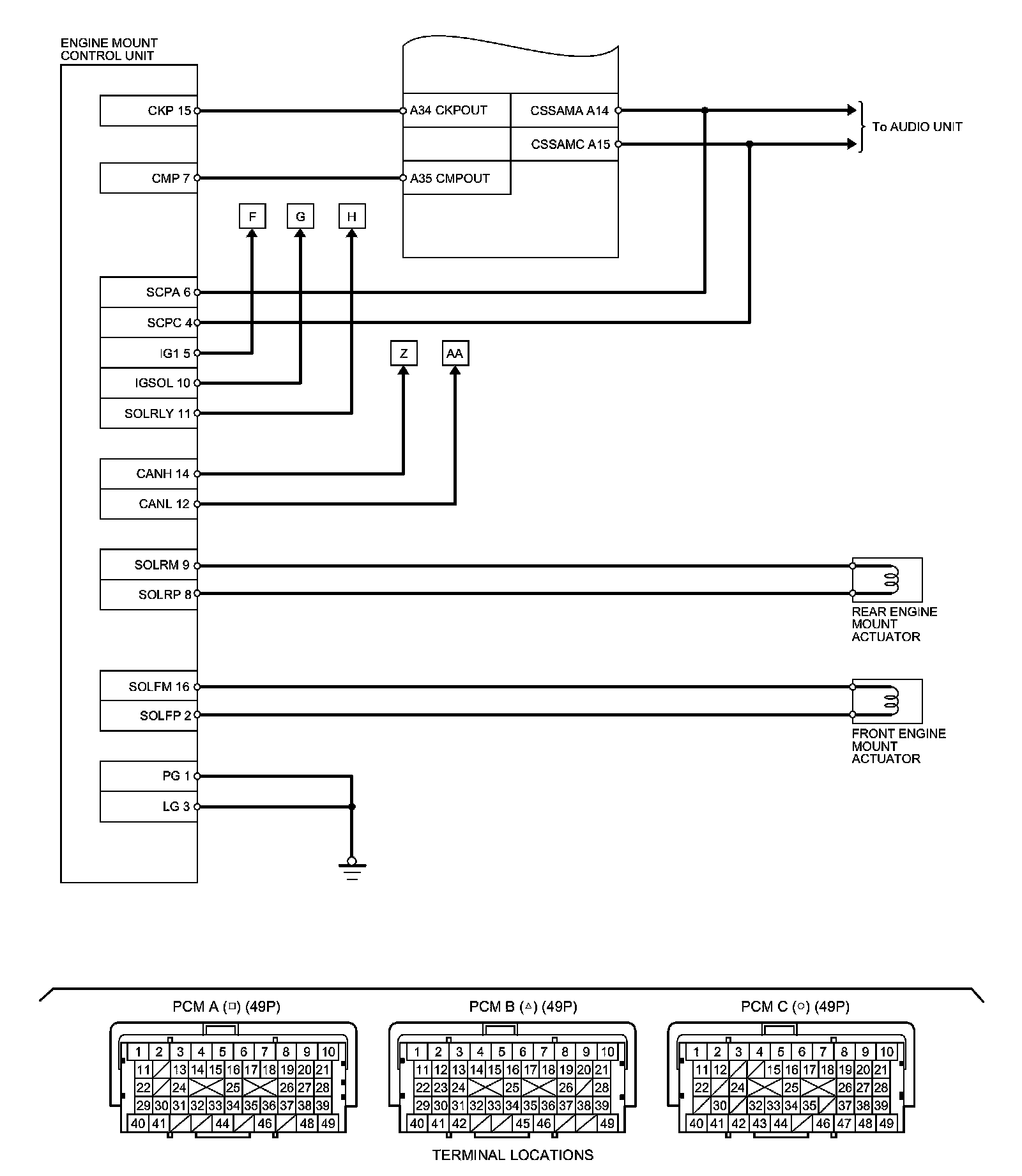 PCM Inputs and Outputs at PCM Connector A (square) (49P)