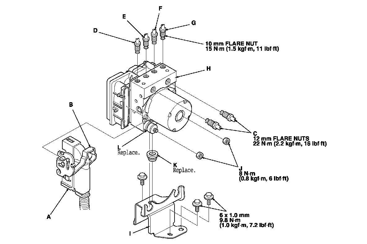 4. Reconnect the six brake lines, then tighten the flare nuts with the specified torque.