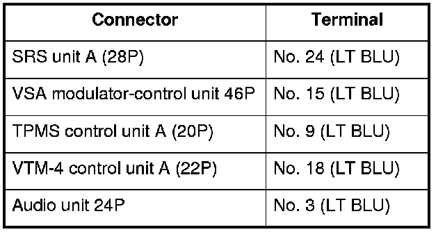 NO - Repair short in the wire between the DLC (K-line) and the VSA modulator-control unit, the SRS unit, the TPMS control unit, the VTM-4 control unit, or the audio unit.