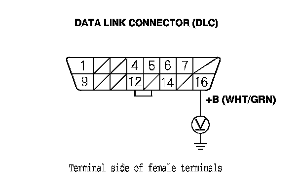 24. Measure the voltage between DLC terminal No. 16 and body ground.
