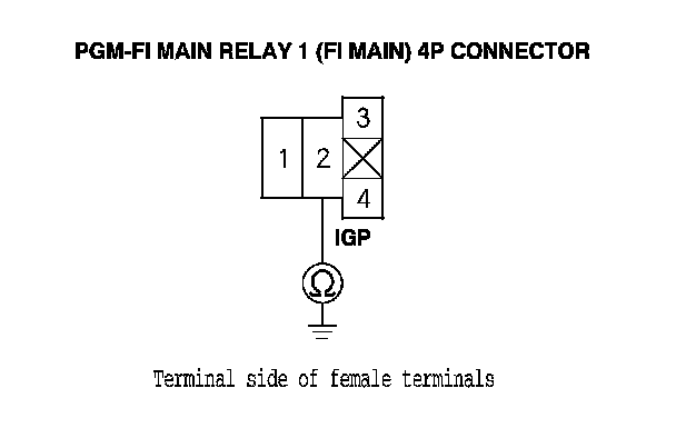 40. Check for continuity between body ground and PGM-FI main relay 1 (FI MAIN) 4P connector terminals No. 1 and No. 4 individually.