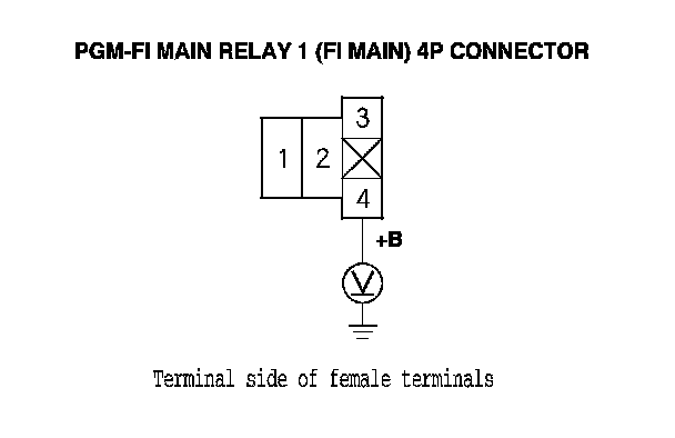 65. Measure the voltage between PGM-FI main relay 1 (FI MAIN) 4P connector terminal No. 4 and body ground.