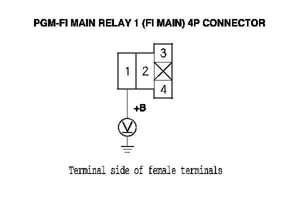 74. Measure the voltage between PGM-FI main relay 1 (FI MAIN) 4P connector terminal No. 1 and body ground.