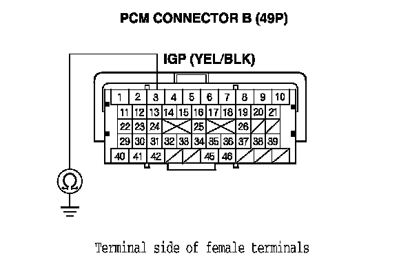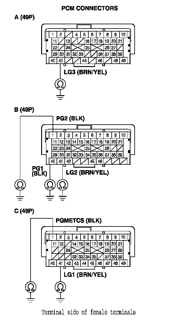 33. Check for continuity between PCM connector terminal A49 and body ground.