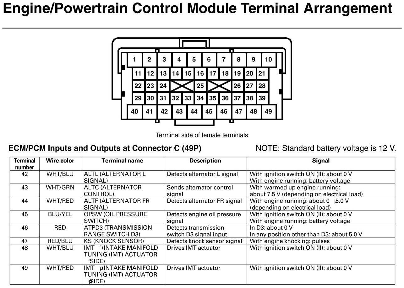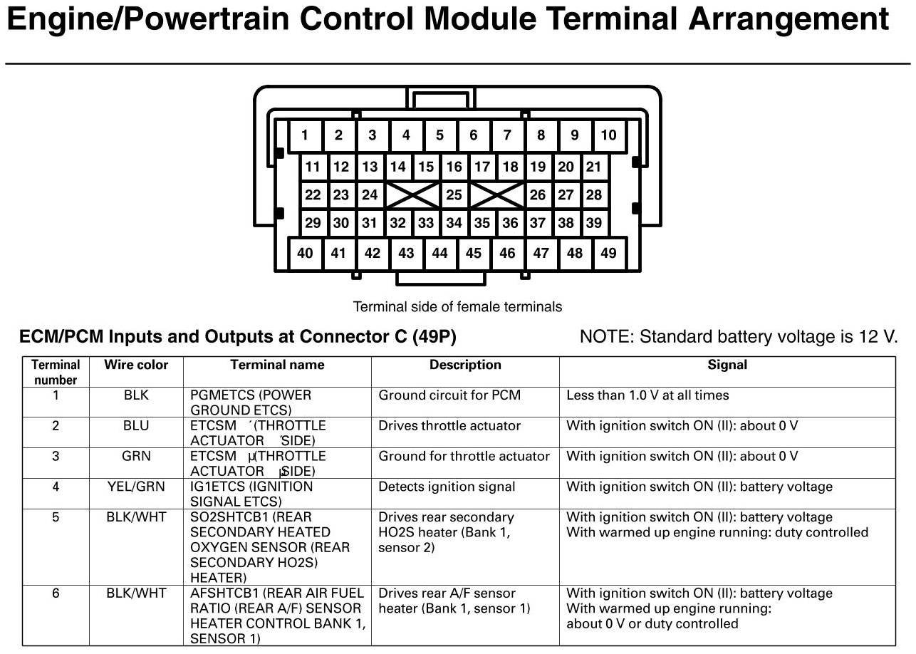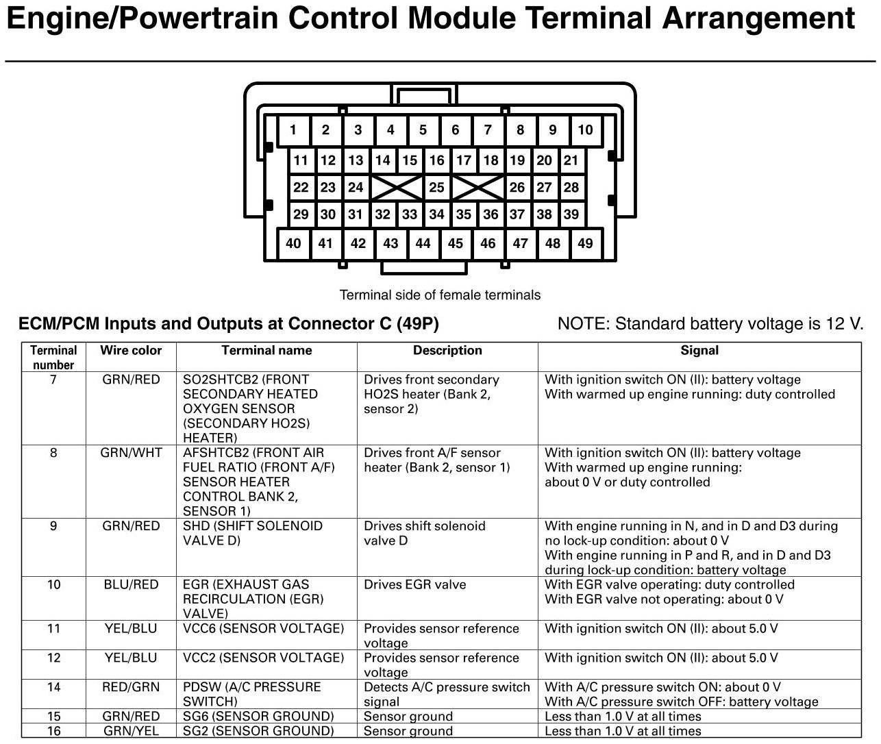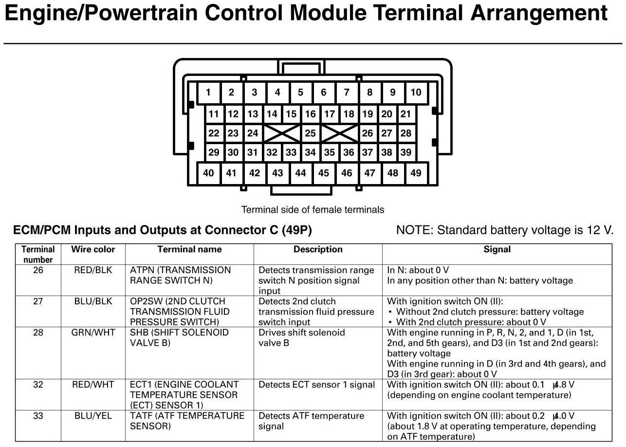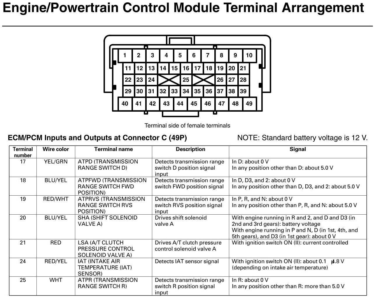 PCM Inputs And Outputs At Connector C