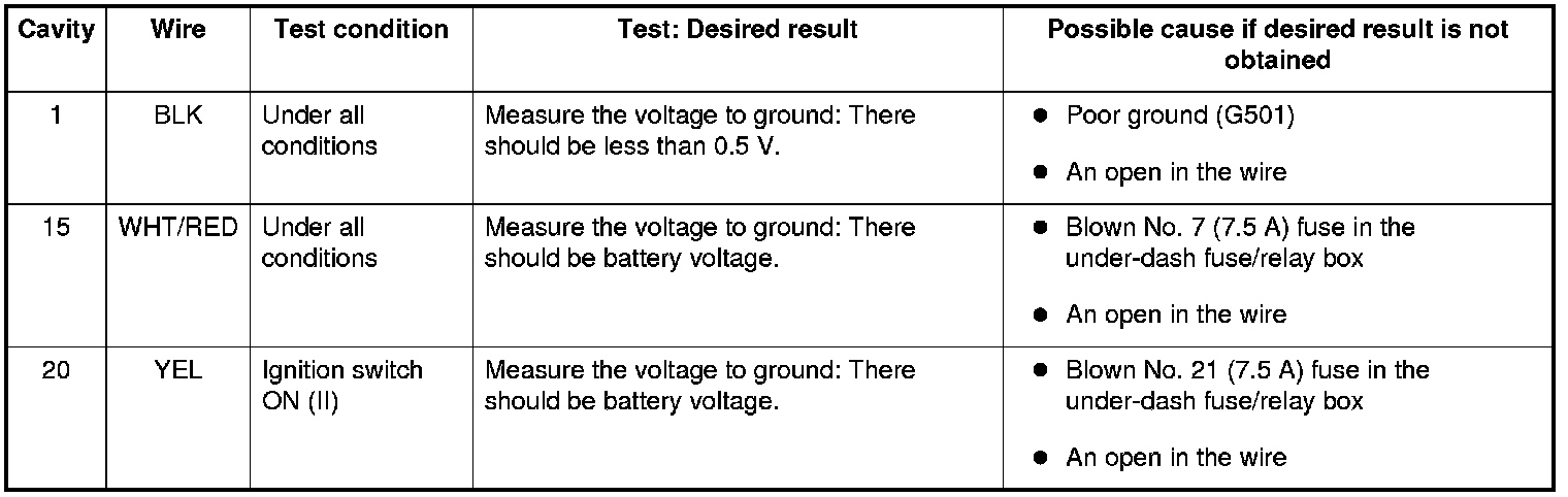 NOTE: Check the No. 22 (120 A), No. 23 (60 A), No. 15 (40 A) fuse in the under-hood fuse/relay box before troubleshooting.