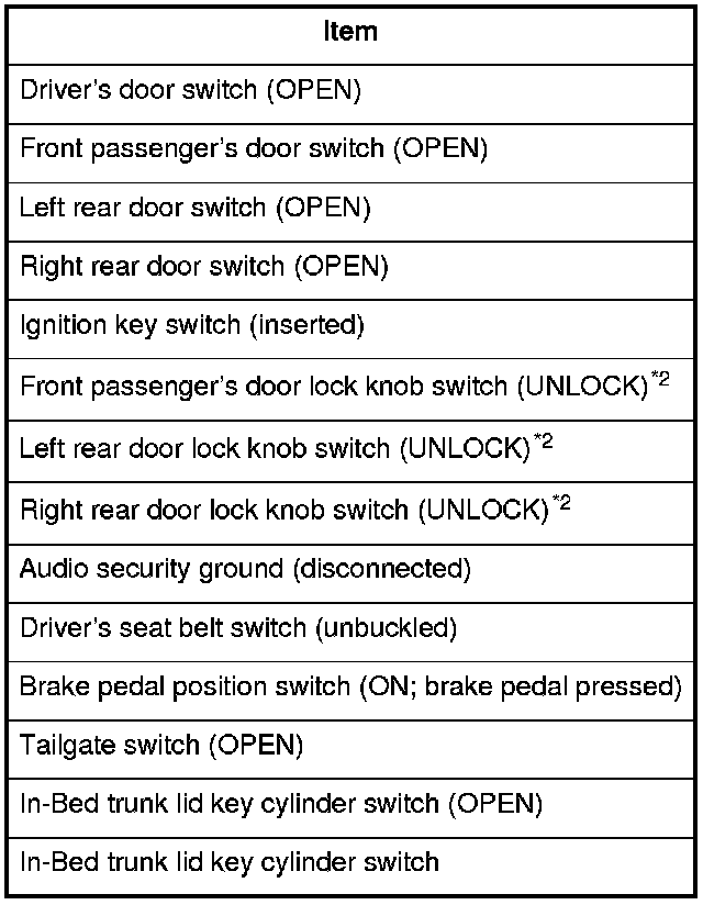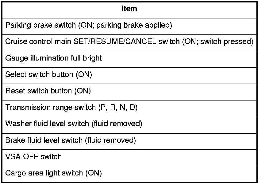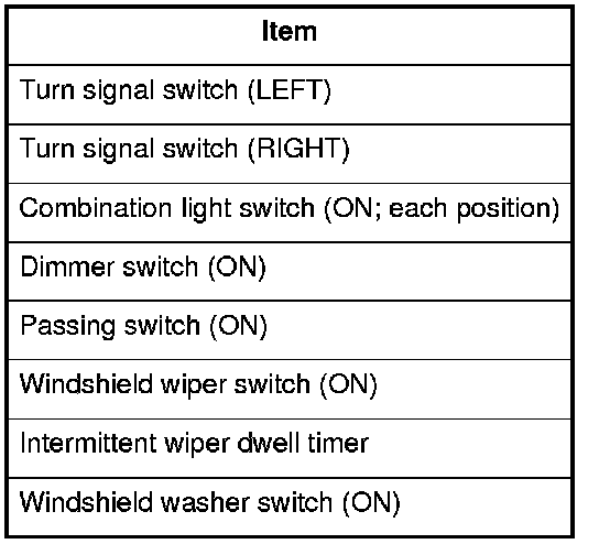11. The following tables list the circuits that can be checked in Test Mode 2. Operate the switch that is most closely related to the problem. If the circuit is OK, the map lights will blink once. If the circuit is faulty, there will be no indication.