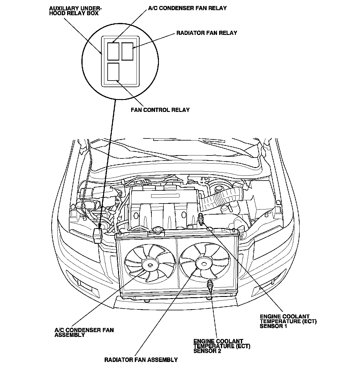 Radiator Cooling Fan Control Module Relay: Locations