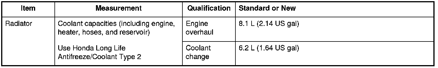Radiator Specifications