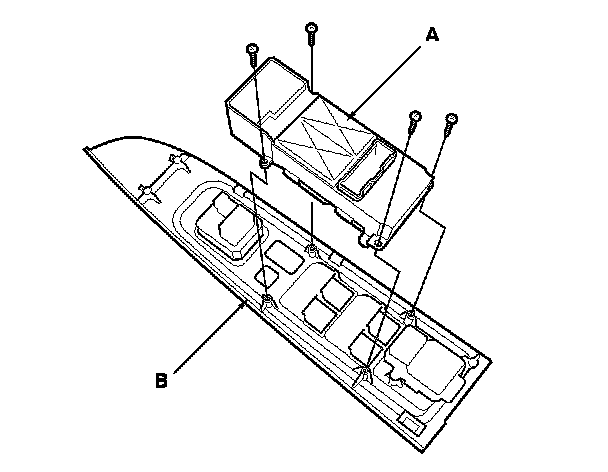 2. Remove the four mounting screws, then remove the master switch (A) from the switch panel (B).