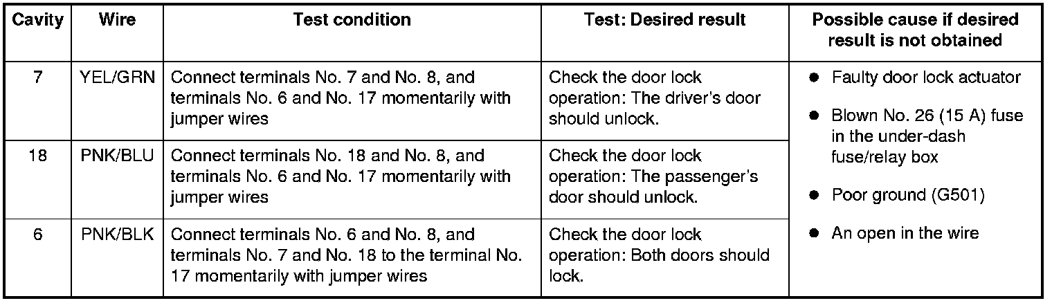 3. Reconnect the connector to the control unit, and do these input tests at the following connector.